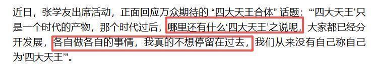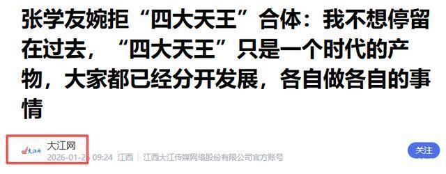 编辑|婉婉 岁月是把杀猪刀,刀刀残忍,刀刀无情。 上世纪九十年代,四大天王是香港娱乐圈的顶流图腾。 同台竞技,封面刷屏,连颁奖礼座位都要争个先后。 那时的他们,是绑在一起的黄金符号,是一代人的集体青春。 可如今再看,早已是今非昔比。 这一次,张学友的公开拒绝,终究没给老组合留一丝体面。 几个人中,也只有张学友守着音乐初心不放,从年轻唱到老。 演唱会一场接一场,不断刷新数据,再创辉煌。 1月24日,人生第324场《60+巡回演唱会》圆满收官。 历时两年七个月,打破巡演记录,在全球华人歌手中,那都是排的上号的。 64岁的年纪,本该是颐养天年,他偏不服老,誓死追随音乐梦。 感动是真的,心酸也是真的。 舞台上又唱又跳,时不时还挑战一字马这些高难度动作。 年龄渐长,精力有限,比不上那些小年轻。 与其一味往前冲,倒不如好好休养几年,再重新出发。 其实,这几年身体没少出问题,用他自己的话说:“一休息就生病,小休小病,大休息大病。” 感冒治好,接着腰伤病发,越发感到力不从心。 2025年最后几天,忍不住感慨:“我害怕这是我自己最后的演唱会。” 年龄一到,人总是多愁善感。 言语之间更多是不舍、惋惜,以及对光辉岁月的眷恋。 但对于人生中至关重要的那三个人,却是截然不同的态度。 最近巡演结束,被记者问及“四大天王”重组消息,张学友一反常态。 先是几句反问,然后抛出一个值得深思的问题。 没有客气的寒暄,没有故作体面的回答,有的是冷静、真实、客观。 的确,粉丝所怀念的从不是某一个人,是他们所带来的青春悸动。 说到底,这个称号只是时代产物罢了,终将在怀念中逝去。 接下来这句话,更为扎心与直接。 在他眼里,强行合体不是致敬经典。 是消费情怀,是让记忆里的美好,被现实的岁月痕迹消解。 所以,宁愿让“四大天王”停在回忆里,也不愿靠尴尬同框折旧青春。 何况,如今的他们早已是今非昔比。 聚是一团火,散是满天星,这句话在四人身上具象化。 曾经,他们并肩作战,是各个领域的王者存在。 张学友,当之无愧的“歌王”,郭富城则为“舞王”。 刘德华“综合之王”,黎明是“文艺之王”。 四人撑起亚洲偶像半边天,垄断奖项、引领潮流,无人不识。 收音机响起的歌声、贴在卧室的海报,身影随处可见。 不过,那些终究是过去式,没有什么是永垂不朽。 后来的后来,四人各奔东西,迎来各自结局,有的依旧辉煌,有的稍显落寞。 刘德华还是那个拼命三郎,年过六十,影视歌三栖依旧能打。 电影票房破百亿,金像、金马影帝加身,主旋律大片和商业片两手抓。 年过六十,精神派头不输年轻人。 前脚犯罪片《猎金游戏》上映,后脚参演《长安的荔枝》紧随其后。 演唱会更是场场爆满,唱跳功力不输年轻后辈。 2025年底,刚刚推出个人单曲,背后撑腰的是民族品牌华为。 郭富城则彻底撕掉“偶像歌手”标签,一头扎进电影圈死磕演技。 《寒战》里的铁血警司,《无双》中的双面反派,个个让人印象深刻。 两座香港电影金像奖影帝奖杯,就是他转型最硬的底气。 不同于其他几位英年早婚,郭富城与熊黛林不欢而散后,把名叫方媛女孩娶回家。 对方来路不明、底细不清,但御夫有术,婚后生下三个女儿,牢牢抓住天王的心。 这段婚姻,常有不同八卦流出,每一次都在考验真情。 两口子倒是异常冷静,将沉默进行到底,小日子平淡但幸福。 黎明,应该是最佛系那一位。 没有层出不穷的绯闻八卦,没有频频产出的作品。 主动淡出大众事业,远离流量纷争。 曾一头扎进慈善事业,奔走在公益第一线,低调的像圈外人。 这两年突然没了新消息,“消失”在众人视野。 他不追求曝光,活在自己的赛道里,活得从容自在。 张学友从一而终,扎根在音乐第一线,源于热爱,更因为责任。 62岁那年,演唱会台上意外摔倒,粉丝的心跟着揪了一把。 事后才知道,是耳水不平衡在作怪。 这种病要不了命,但时不时复发会导致头晕,失去平衡。 他没知难而退,咬着牙坚持下来,诠释什么叫做“生命不息奋斗不止”。 同样是时代符号,F4的尴尬合体,让口碑走上极端。 去年在台湾大巨蛋,流星花园四人迎来久违的合体。 粉丝盼了十二年,结果一眼望去,满屏尴尬。 言承旭、周渝民、吴建豪,清一色黑色西装。 只有朱孝天,穿了件棕色正装站在旁边,像个误入舞台的商务人士。 站位更是耐人寻味。 三人肩并肩贴在一起,朱孝天被隔在外侧,中间空出一大截。 昔日兄弟,连表面功夫都懒得做了。 当年的F4红遍亚洲,一首《流星雨》成青春记忆。 如今再合体,只剩各怀心思的疏离和硬撑的场面。 没有兄弟情深,只有利益纠葛。 一次次尴尬合体,磨掉的不只是粉丝的期待,还有那点仅存的青春滤镜。 到后来装都懒得装了,直接甩掉朱孝天,组成“F3”出席活动。 说到底,F4的合体,从来都不是为兄弟,只是为消费情怀,捞一笔快钱。 可惜情怀易逝,尴尬难掩,终究是回不去。 同样是时代符号,前者选择尊重,给时间时间,让过去过去。 而后者在利益面前,暴露出不堪的另一面。 只能说,没有对比就没有伤害。 张学友的拒绝、朱孝天的尴尬,吃尽组合红利的他们,却选择不同结局。 正像是柴智屏提醒的:“不要用一个团体的名义,去捆绑他们的活动。” 而未来走向何处,掌握在自己手中。 不忘初心,方得始终,这八个字从不是一句空话。 混到最后,看的其实是人品。